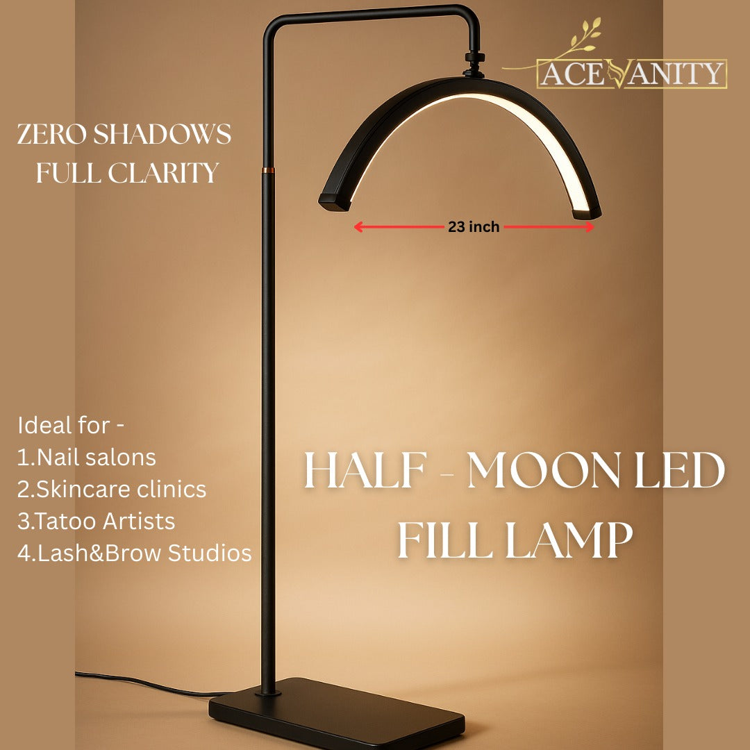 Bring luxury, precision, and professionalism to your setup with the Half Moon LED Lamp — a salon essential that makes your work shine brighter.